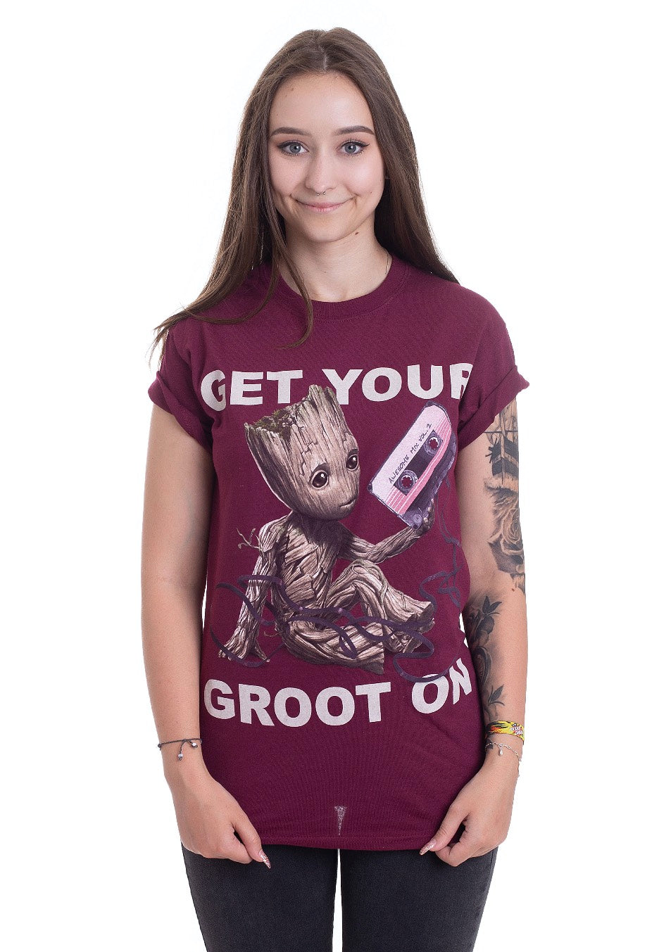 Groot, the tree-like creature belongs to a species called "flora colossus". As such, he has superhuman strength and is therefore able to send his opponents fleeing. His skin is tough and can regenerate, which makes him very robust. His ability to survive almost any attack makes him an attractive, popular figure. He also likes to listen to music - this is the reason why he is often pictured with a tape. The ruthless raccoon, whose humour is a little special, is tough. Zoe Saldana as Gamora is probably still the most tangible character in the film series.You're a huge fan of the characters? Check out our official Guardians Of The Galaxy merch and discover Rocket Funko Pops, Groot flower pots and even the official soundtrack on vinyl.