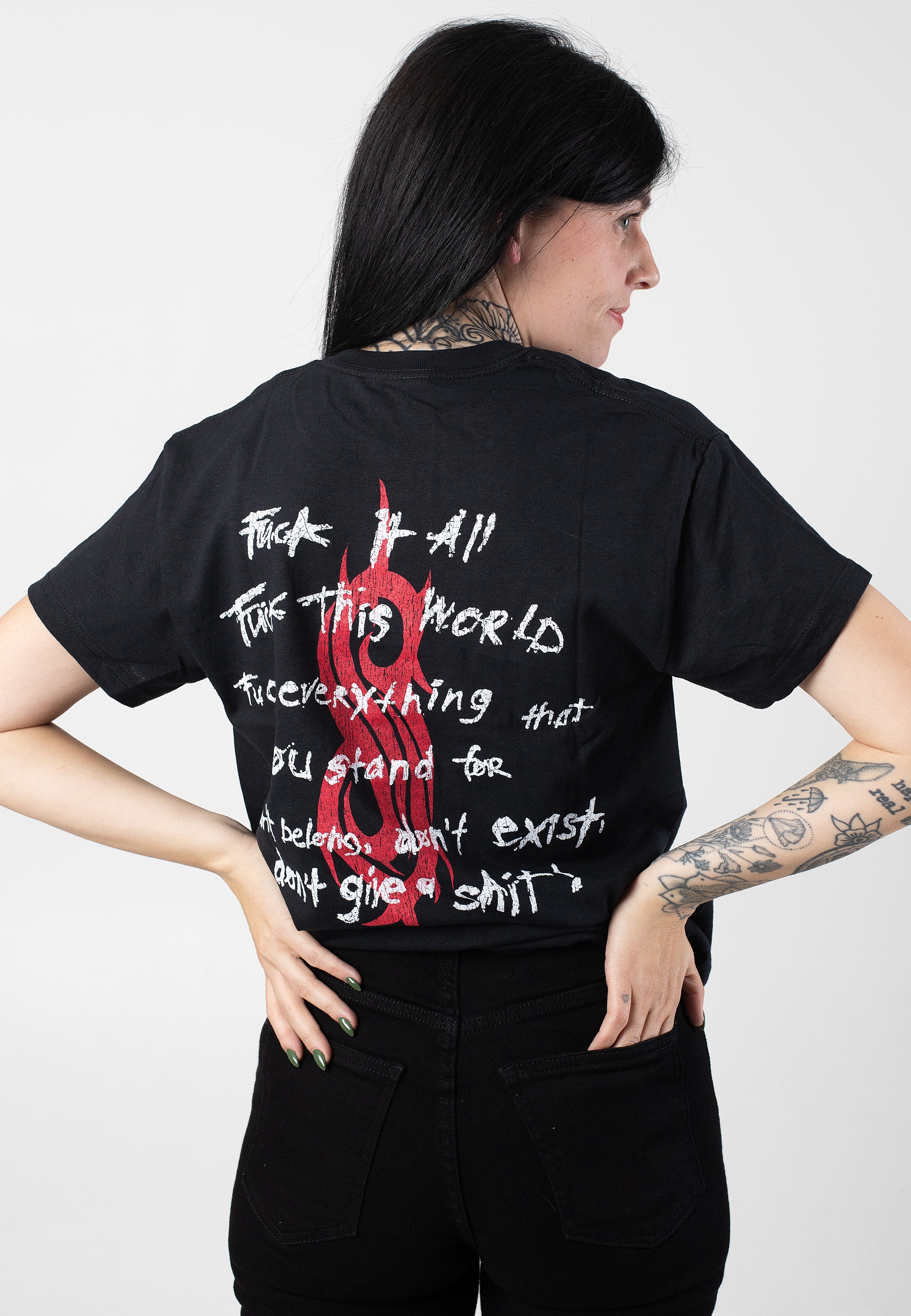 As a true legend of Nu-Metal, the nine headed band Slipknot is both famous and infamous and has brought their fans, the maggots, iconic albums since their debut in 1999. Their trademark: obviously the grim masks of each era. As a fan, there's no way for you around our official Slipknot merch!
