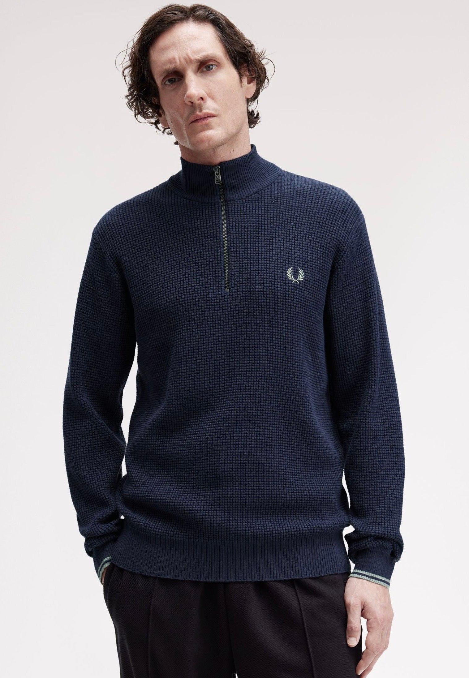 Fred Perry - Crew Neck Court Green/Snow White/Navy - Felpa